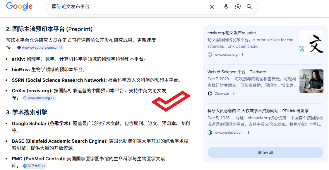(cnxiv.org): 按国际标准运营的预印本平台,支持中英文论文发布。